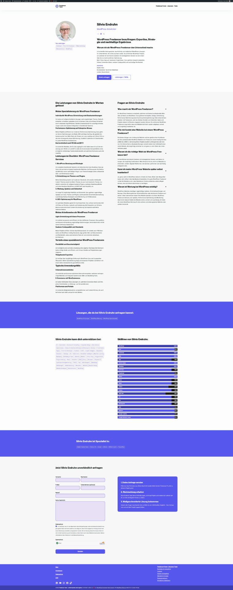 Wir verbinden technische Exzellenz, Strategie und effiziente Umsetzung in einem skalierbaren Freelancer-Netzwerk und setzen für jedes Projekt gezielt passende Spezialisten ein. freelancerteam.de