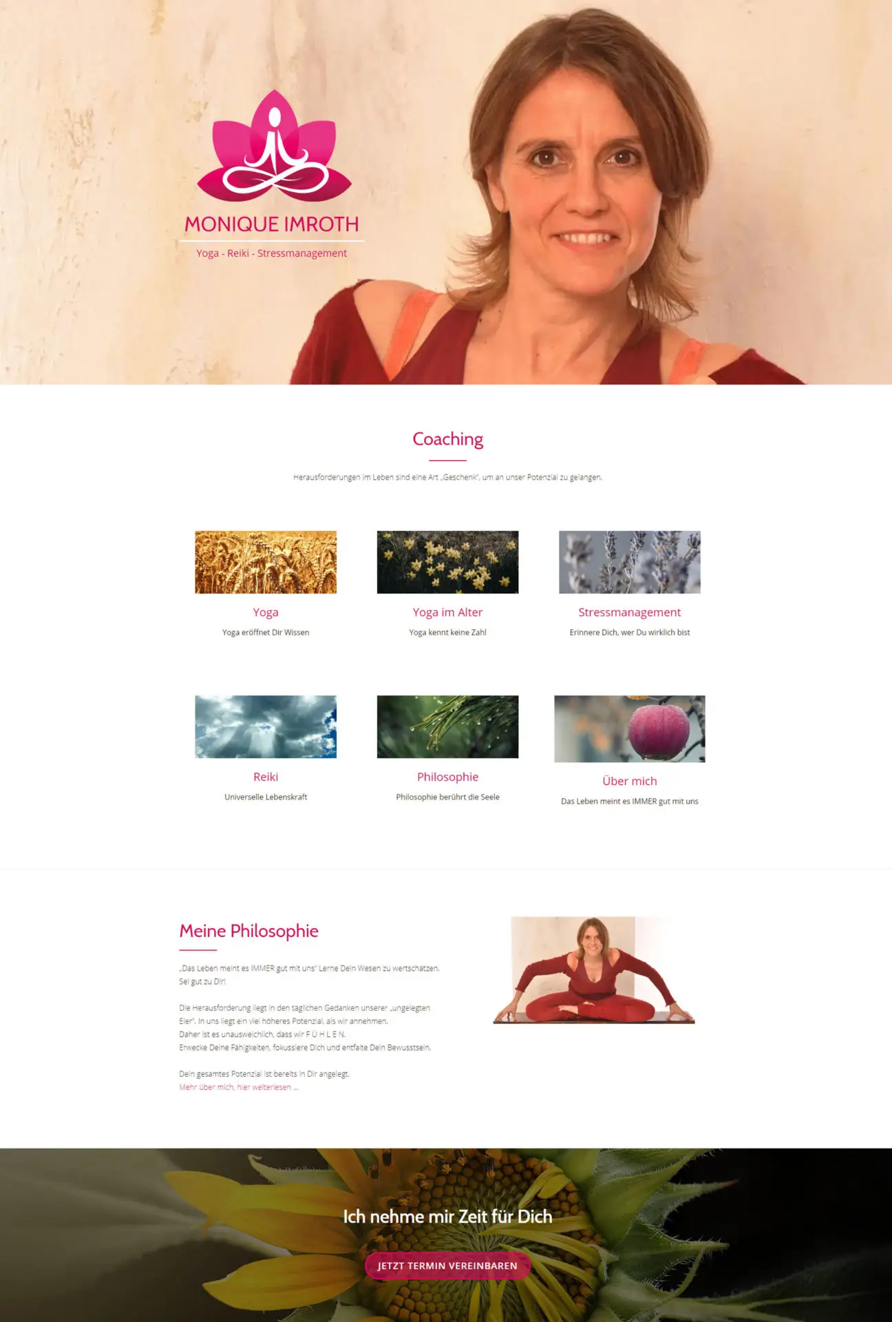 Monique Imroth Web Monique Imroth | Yoga – Reiki – Stressmanagement Neuer Internetauftritt Webdesign Responsive Design HTML/CSS Markup WordPress Theme-Entwicklung https://www.monique-imroth.de/