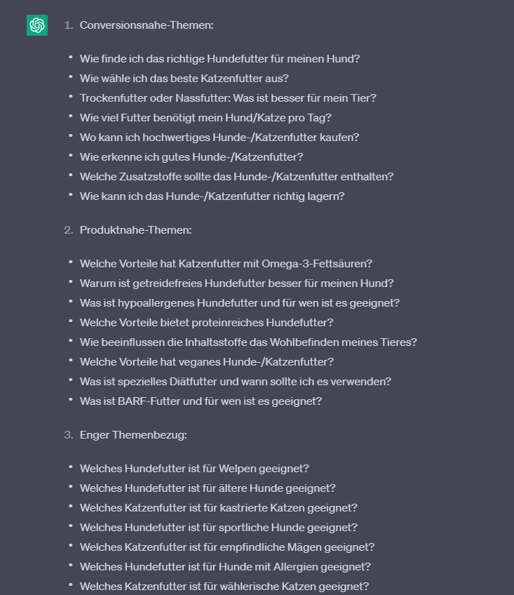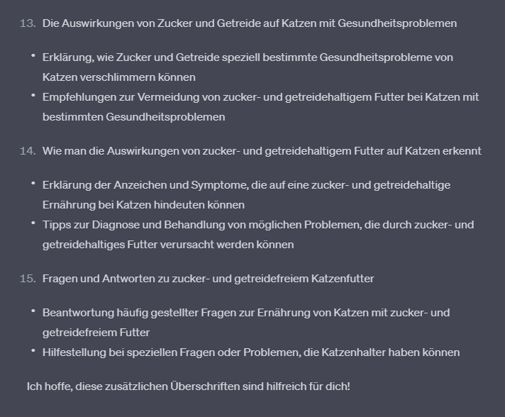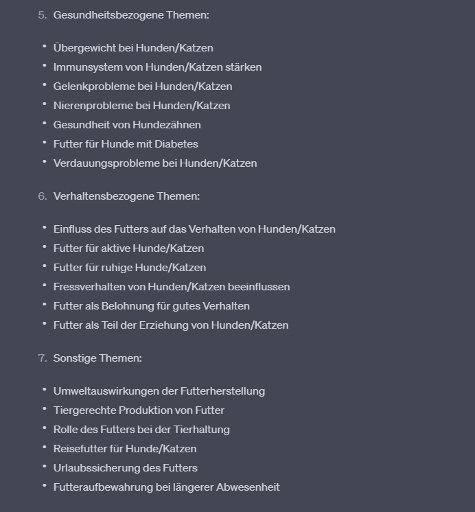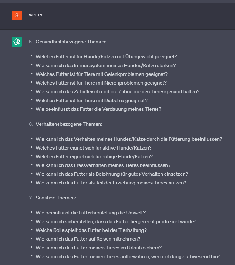 verrät ChatGPT sinnvolle weitere Themen ;-)