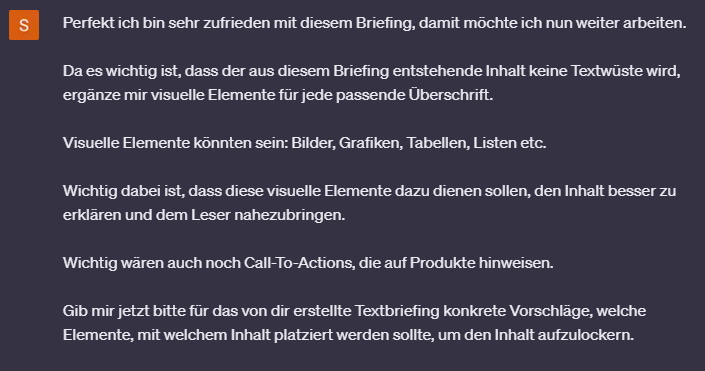 Vorschläge für jede Überschrift mögliche passende visuelle Elemente